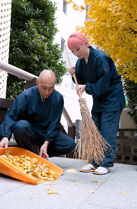 光明寺で松本紹圭氏と掃除するimma(写真提供=imma.gramのInstagramより)