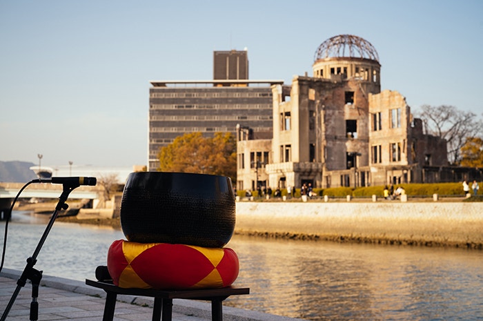 原爆ドームの前で来日僧侶方による「Namo Avalokitesvara(ナモ・アヴァロキテシュヴァラ 南無観世音菩薩)」のチャンティングが行われ、全世界にライブ中継された。