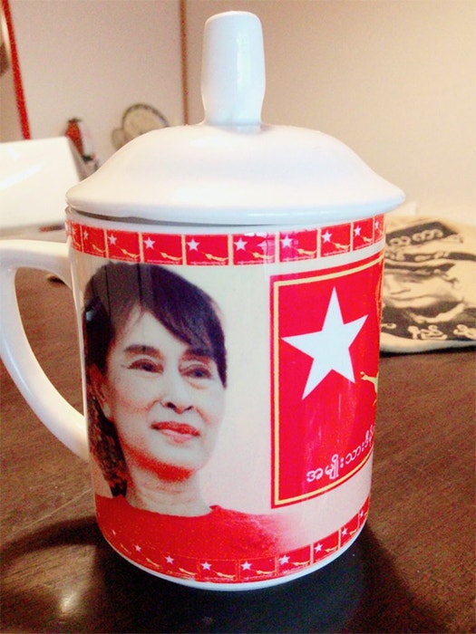 マグカップの裏面は娘のアウンサンスーチーさん。一個で二度おいしい!