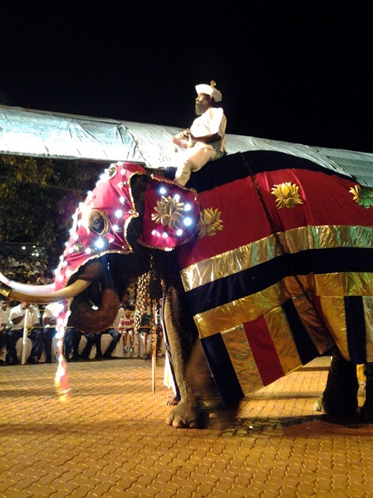 じつは、2013年のペラヘラ祭に招待されて、スリランカには行ったことがありますよ(証拠写真)。パレードを挟んで向かいには、高円宮承子女王が座っていらっしゃいました。