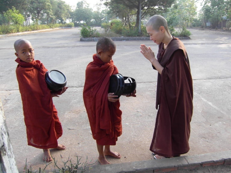 次に、理想と現実の自分とのギャップが苦しかったです。私が新米サヤレーであっても、ひとたび外に出れば私は「出家者」とみなされます。それに加えて先輩の女性出家者からはチェックの目が光り、私のふるまいにダメ出しされるときもありました。それなのに清浄な修行者として完璧にふるまえない自分の未熟さに、自己嫌悪の連続でした。