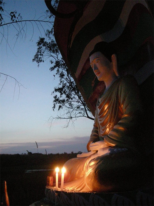 1時間半瞑想してから、朝の読経を行います。パーリ語で「十二縁起」とその逆観を唱えます。暗闇で読経していると、執着がいかにこの生で死んだ後もなお次に続く生を作ってしまうのかという、あの輪廻のシステムをしみじみと内省して、「はよ解脱せなあかんよな……」と痛感していました。