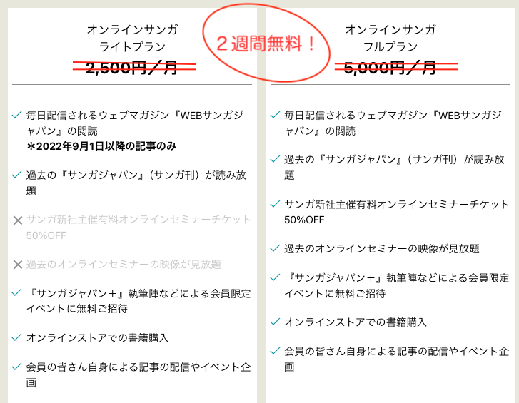 「オンラインサンガ」を2週間無料でご利用いただけます。
