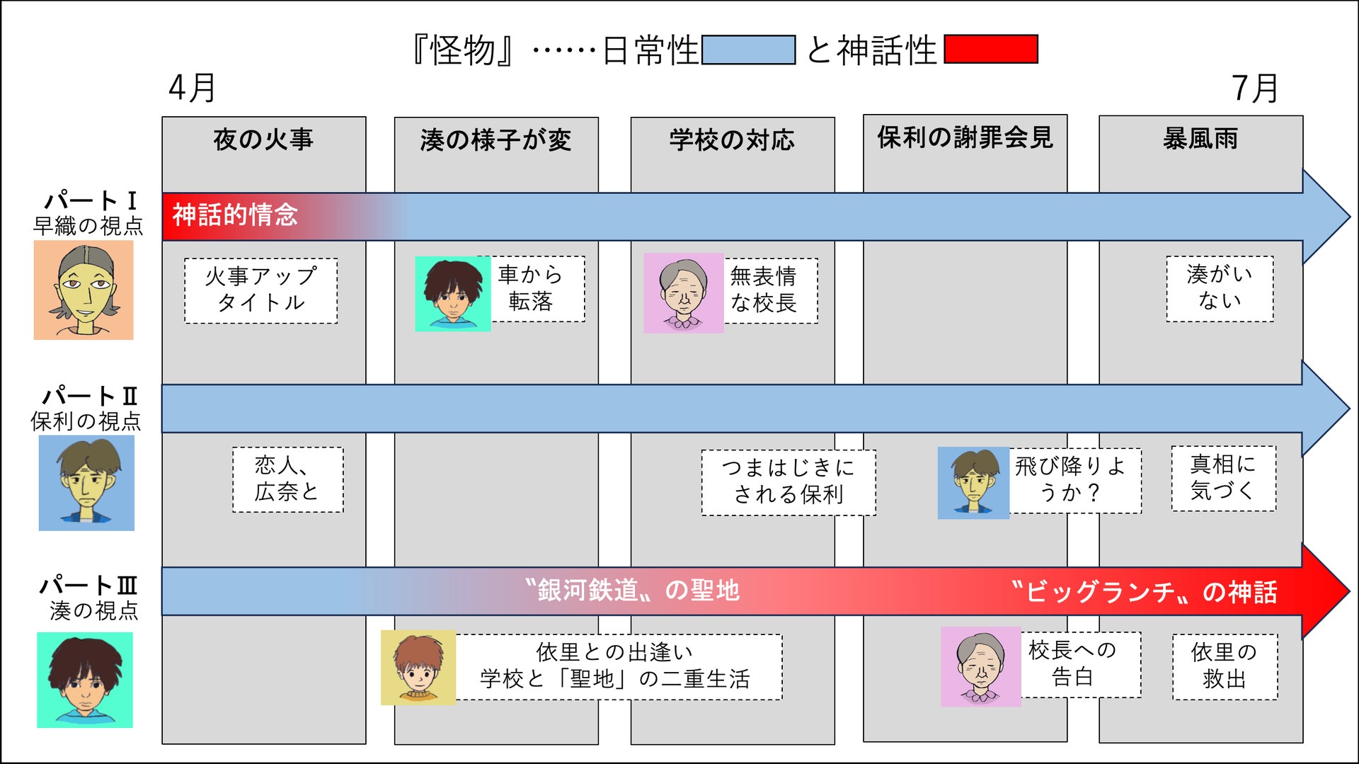 この映画では、学校の隠蔽体質やその背後にあるモンスターペアレント問題、担任の保利先生の発達障害的なキャラクターの受難といったさまざま因果の系列が、主人公たちの性的指向をめぐる問題に絡みついています。このミステリーの中で、映画の観客たちは、いったい誰が事件の陰の主役なのかと「怪物探し」に導かれます。