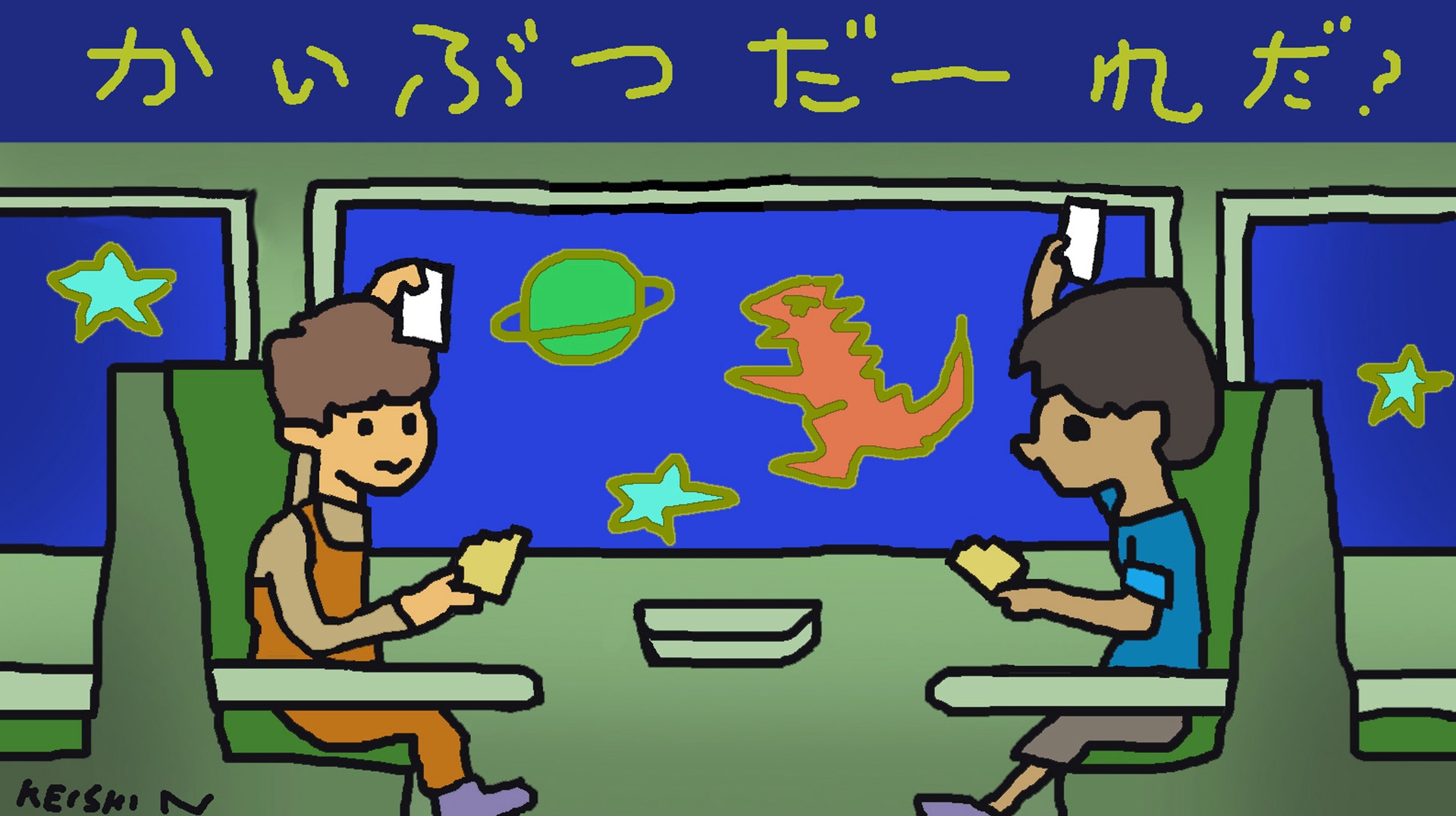 少年二人が電車のボックス席で遊んでいるシーンを見れば、日本人なら誰でも銀河鉄道列車に乗ったジョバンニとカムパネルラを思い出すにちがいありません。